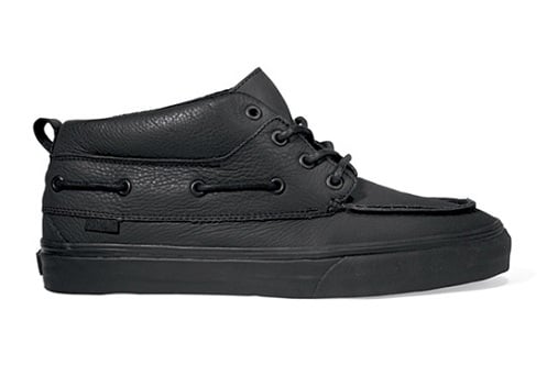 After getting some “wings,” Vans now turns its attention to the application of some matte leather to a trio of classic designs. Pictured here are “blackout” matte leather uppers of the Vans Switchback, Chukka Del Barco mid & Era. Shoe laces, lining and soles all come in black matte leather as well, finishing off a simple but effective pack that is set to hit Vans retailers during the earlier part of 2012.