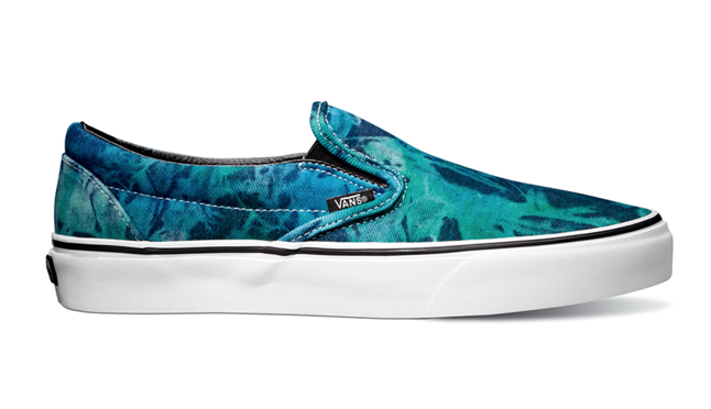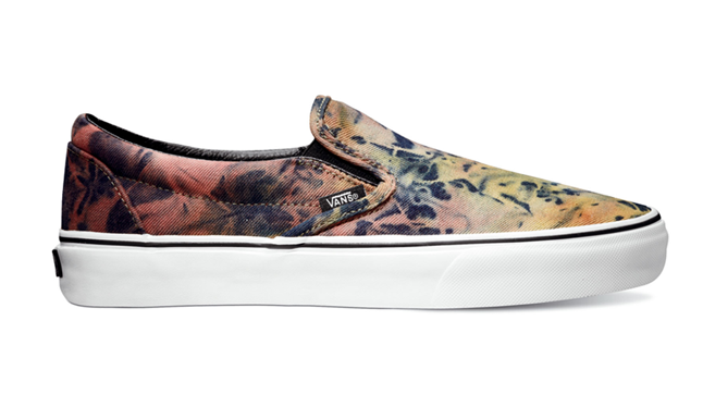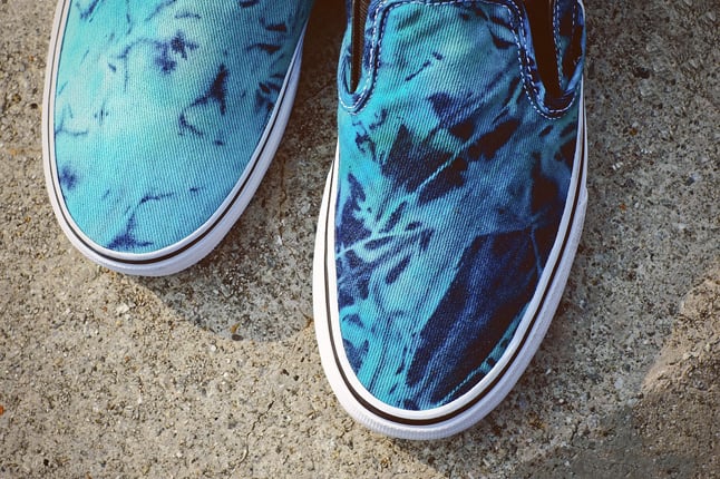 The Vans Classic Slip-On is a great summer shoe. It’s comfortable and easy to get on or off. What could make it any better? Vans answers that question with their latest offering for summer 2013 with tie dye. The canvas upper shows off a psychedelic “Tie Dye” pattern that sits on top of an all-white vulcanized sole. Black leather lining takes care of the inside of the sneaker. The shoe can be purchased now at the Vans online store.