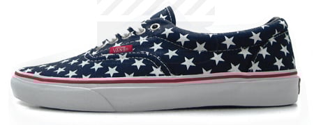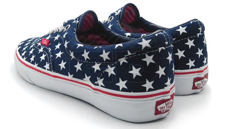Just a little while ago, we shared the Vans Stars & Stripes Pack in black, and now we have the Era Stars & Stripes in red, white and blue. The official colorway for the Vans Era Stars & Stripes is Patriot Blue/True White. White stars are placed all over the uppers, while a red “stripe” runs through the midsole. You can purchase now for $45 at Extra Butter.
