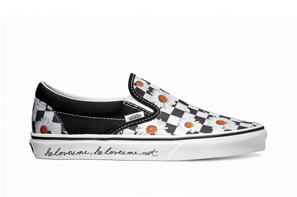 Valentine’s Day is right around the corner, and Vans has got a new release for the ladies. The Vans “Love Me, Love Me Not” Valentine’s Day Pack incorporates a floral print of daisies and loose petals all over uppers of Sk-8 Hi Slims and Slip Ons. The leather base of the Sk-8 Hi model is a smooth, black leather, while the slip ons are a checkerboard pattern. “He loves me, he loves me not” is written in cursive along the sole, beneath the heel of each pair of shoes. Head over to Vans Storeย or select retailers to cop you a pair!