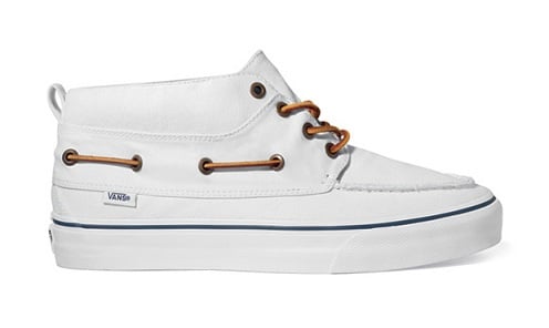 Earlier today we showed our readers two pairs of the perforated Vans Vault Velocita sneaker model in suede grey and suede brown that are a part of the line’s Holiday 2010 collection. Now we’d like to give you just a taste of what’s in store for the Vans collection of Spring 2011. Pictured here you is an Authentic Lo Pro Clad equipped with a leopard print and black soles. After the jump, you can also sneak a peek at a predominantly white pair of the Chukka Del Barco Decon CA and a navy blue Sk8-Hi Reissue CA. At first glance, which of the three do you think looks best?