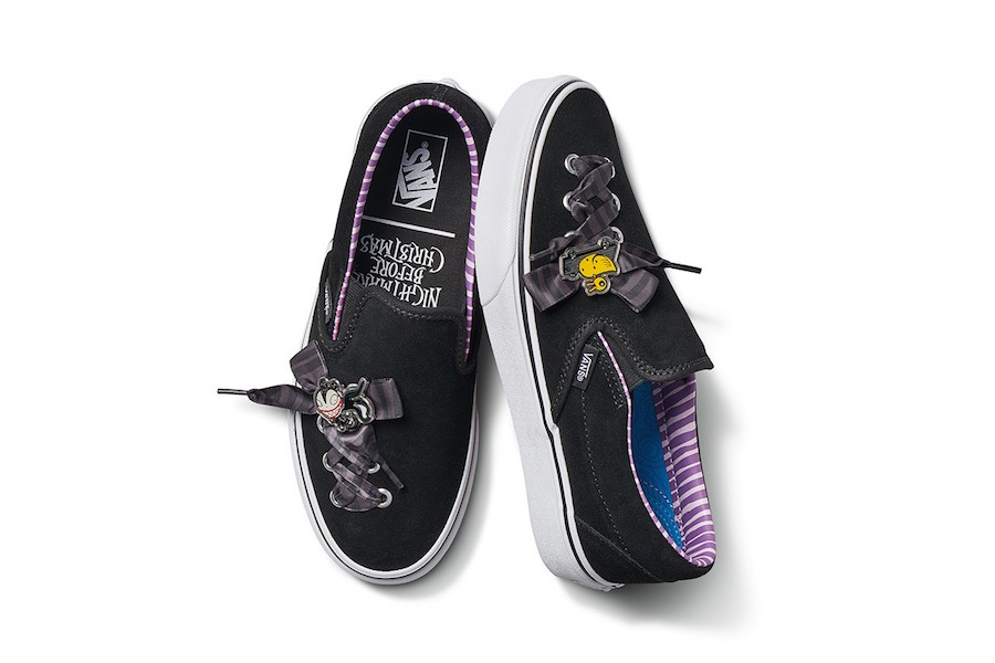 Each pair will feature characters from the movie along with text and other small details. The SK8-Hi features a Black and Purple theme while the Slip-On resembles Jack Skellingtonโs shoes. The Vans Old Skool comes in a flashy theme while the Authentic comes in Black and White.