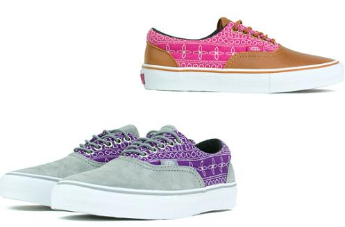Earlier this week we brought you a look at the Vans Vault Sk8-Hi that boasts an Inca pattern along the upper and catches the eye almost just as much for its colorful display. But it seems as though the Vans team has got those of you who prefer low-top cuts covered as well. Pictured here are two pairs of the Vans Vault Era that also contain touches of Inca-inspired artwork. One comes in a light grey/purple colorway, while the other in brown/pink. These have already begun popping up at some local Vans Vault carriers, so check-in with your favorite spot as soon as possible to get your shot at either or both of these.