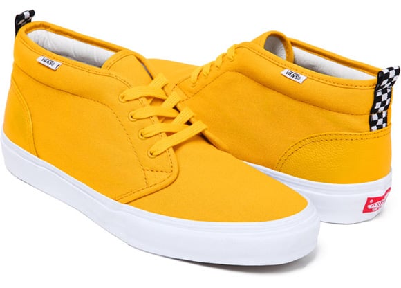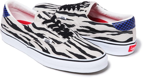 Supreme is at it once again, this time collaborating with Vans on a set of Era and Chukka’s. Firstly, the Supreme x Vans Era uses a canvas upper, leather heel and lining. The Chukka also contains a canvas upper, leather lining on the insole and heel. The Era’s will release in green/black, orange/black and white/black. The Chukka will drop in red/white, blue/white, yellow/white, teal/white, black/white. Available at Supreme and online on May 26th 2011, and in Japan on May 28th 2011.
