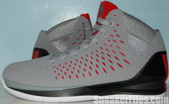 Breaking down the adidas Rose 3.0, which features a synthetic “aluminum” perforated upper. You can see red through the perforation, which is actually SPRINTWEB.