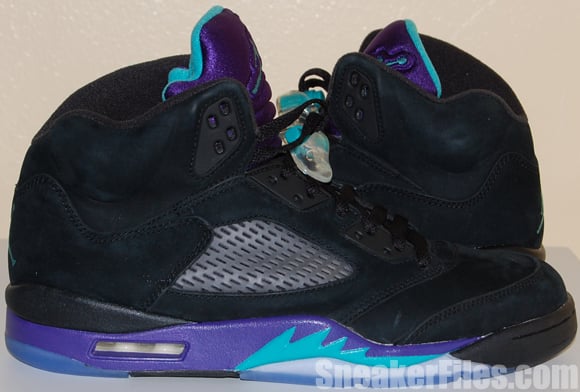 Comparing the Aqua Air Jordan V to the OG Grapes, everything is identical even down to the colorway. Except we have the obvious black nubuck uppers while Grape had white leather.