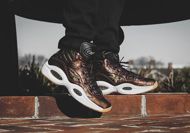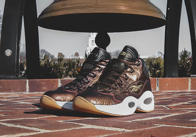 This Reebok Question is of course inspired by the Liberty Bell, which features a luxurious Metallic Copper through the uppers that resembles the Liberty Bell. In addition we have Gold accents throughout while White covers the midsole. Finishing the look is Gum applied to the outsole.