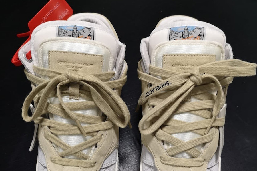 The Off-White 3.0 sneakers shown comes dressed in Purple, Black and Blue while the other pair is done in White and Tan which is toned down compared to the first color scheme. Constructed with a mixture of leather and suede throughout while utilizing double tongues and a thick chunky midsole. Finishing the look is โShoelacesโ branding on the laces.
