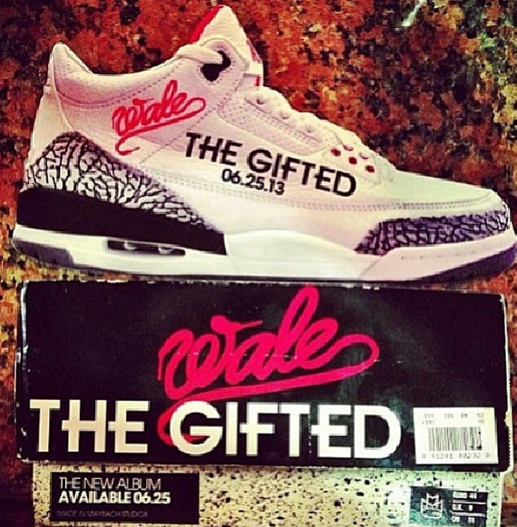 Know for habitually being spotted rocking some ill sneaker heat, Wale has resorted to using some dope Air Jordan III flyers to promote his upcoming album. Featuring his name superimposed onto the “Air Jordan III “White/Cement” silhouette, this particular pair of kicks has an ill connection to the MMG star as he recently hit Flight Club in NYC and bought a stockpile of the aforementioned Jordans for his entire team.