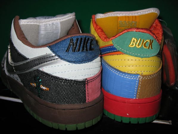 Now, when and if a real pair comes out from Nike SB, it is said that materials, characters, colors, numbers and more are taken from original releases of Nike Dunk SB’s and combined all on one Dunk. You can see the pigeon and raygun characters at the heel, number 13 and 7 on each shoe (Unlucky and Lucky Dunk SB), and other characteristics from Shanghai 2, Calis, Supremes, Hufs, Tweeds, Bucks and more.