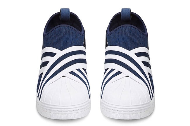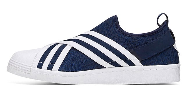 The two colorways of the slip-on edition adidas Superstar comes in Blue and White or White and Black. Each features the Three Stripes branding which lands on the elastic straps that covers the panels and forefoot. Using Primeknit across the base while nubuck lands on the heel counter. Finishing the look is White Mountaineering branding by the heel and the traditional rubber shell toe.
