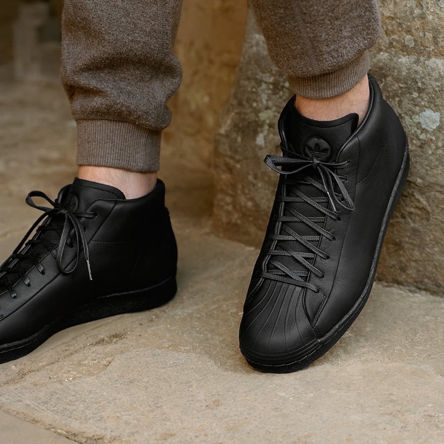 The adidas Superstar Pro Model โ the high-top iteration of the iconic shell-toe sneaker โ steps out in a full black waterproof leather construction with waxed laces, gusset tongue and hand-stitched details on the heel with โMonโ branding. 2017โs headline silhouette the adidas Campus is then rendered in a one-piece premium leather make-up with 3D molded 3-stripes and subtle โMonโ branding, elevating an archive classic with understated modern design. The second generation of the iconic adidas NMD silhouette, the adidas NMD R2 then receives 2 new treatments; the original design assumes a charcoal Primeknit wool blend construction with welded overlays and a black leather heel-patch, while the new adidas NMD C2 Chukka model combines texture and tone through a felt textile upper in heather brown with tonal details including a deconstructed leather heel-patch.