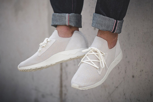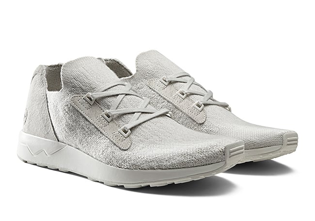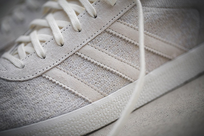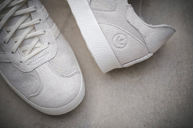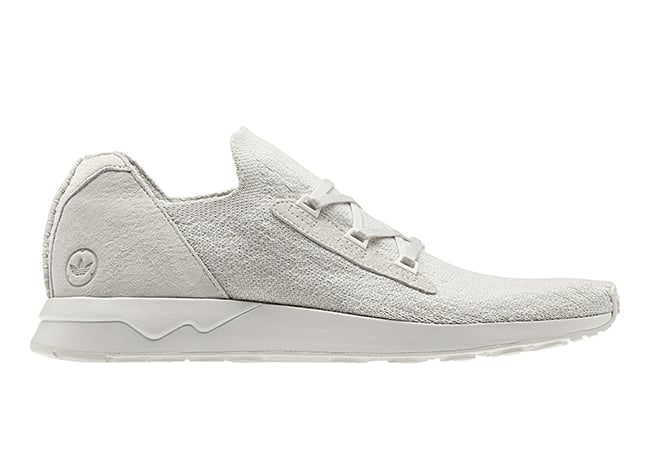 An updated iteration of the iconic adidas Gazelle 85 footwear silhouette, in tonal off-white Primeknit and navy blue vintage suede make up half of a footwear offering that also includes the brand’s take on the adidas ZX Flux ADV X model, both feature embossed branding on the heel and a premium aesthetic.