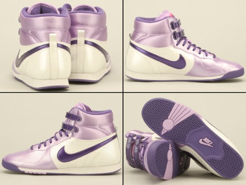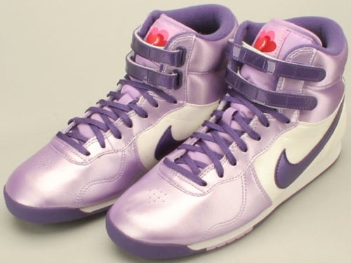 Although the silhouette isn’t often seen, Nike chose the Aerofit high has one of the silhouettes it would celebrate Valentine’s Day with in 2010. Last week we showed you a red pair that’s topped off with hearts on the tongue. But now we’re looking at another pair that sports a lilac/purple/white colorway with the same aforementioned hearts also on the tongue. Just like the red pair, a stateside release of this Women’s Nike Aerofit high is not known. However, certain overseas Nike retailers already have these in stock and available for you to purchase- regardless of whether it’s being bought for you or that special someone. Take a closer look at this shoe after the jump.