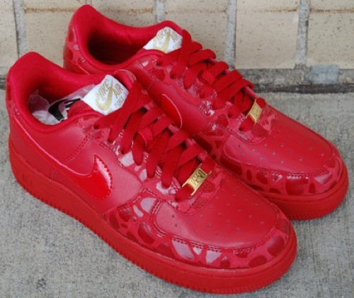 Just before we officially celebrated the new year, we got a look at a Nike Dunk high designed for the female sneakerheads looking to celebrate Valentine’s day. Now, it’s the turn of the Nike Air Force 1 to join the celebration. Pictured here is a Nike Air Force 1 low also designed for the women who will hopefully have someone special on Valentine’s day to see them rocking these. The upper is completely covered in red, with premium leather on the toe box and mid & back panels. Then, patent leather can be seen on the Nike swoosh as well as on the heel tab, shoe laces area, and front panel- where what looks like a safari print is also located. So is the Nike Dunk high or Air Force 1 low “Valentine’s Day 2010” more likely to get your lady friend’s attention?