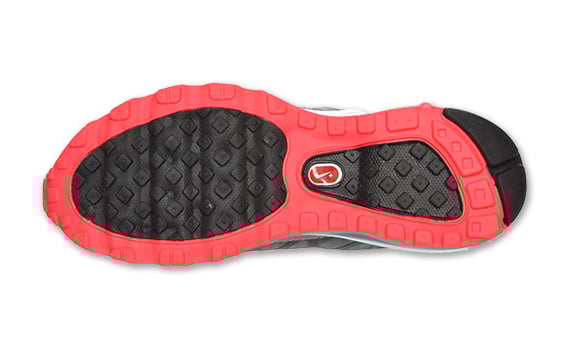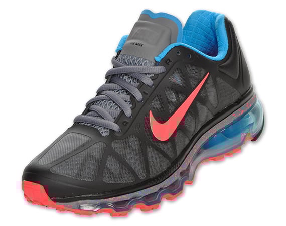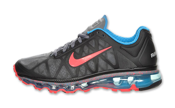 An array of Nike Air Max+ 2011s have already surfaced and are available at ย local stores to the general public. Another colorway has just dropped in the Nike Running category for women. The Nike Air Max+ 2011 combines style and performance with light, breathable uppers in tonal Cool Grey and black. Blue Glow sock liner and 360 Air Max unit and accents all around contrast the solar red Swoosh and solid rubber outsole. Get these now at local shelves, like Finish Line.