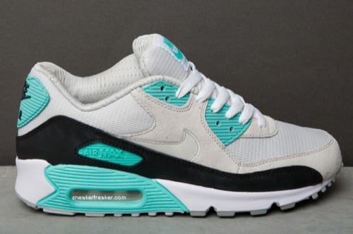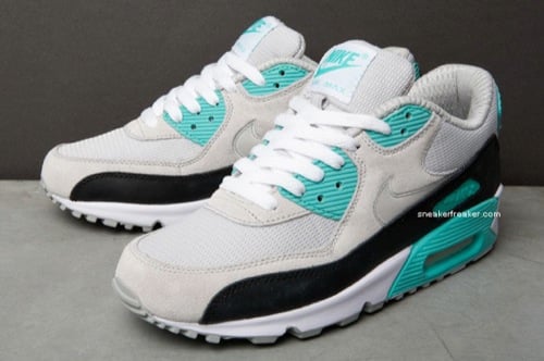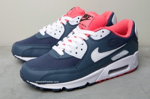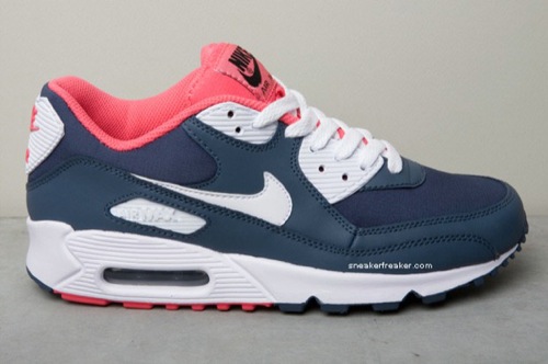Right after showing you two pairs of the Nike Air Max 1 including a springtime one sporting some “julep” coloring and another “Try On” pair, now the Air Max 90 gets some attention. This classic Nike running silhouette is being prepared for the ladies in at least the two colorways pictured here. One includes a navy leather base with pink accents by way of the ankle lining and tongue. The second pair includes both mesh and nubuck materials along the upper, with a black/white/light grey/teal color palette. You can expect these to release stateside soon- fellas, think you might be copping any large women’s sizes in either one of these colorways?