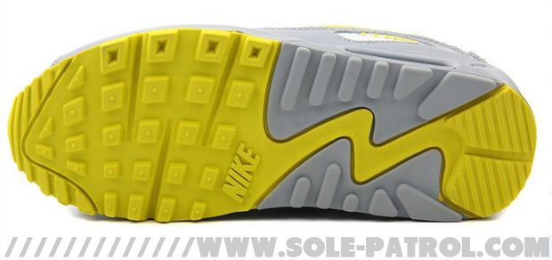 And recently, the Womens department is treated with the Air Max 90 once again in Wolf Grey / High Voltage. This classic, formerly the Nike Air Max III, is covered in Wolf Gray, and accented with White and High Voltage Yellow.