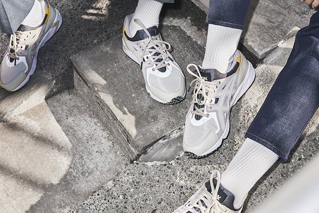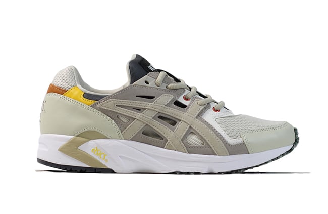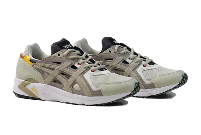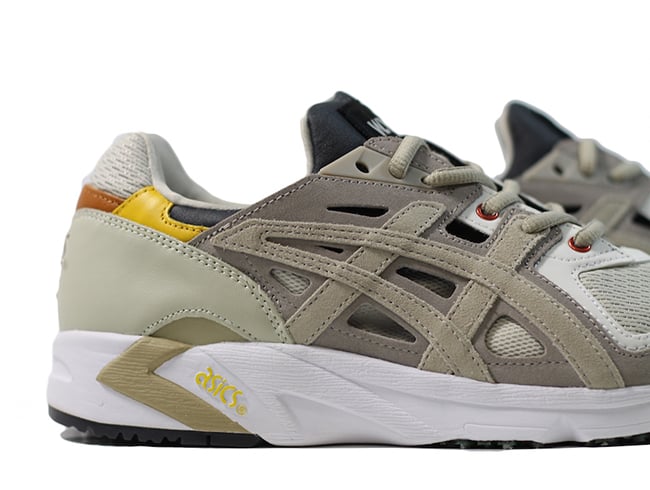The subtle take on the 90s runner features a mesh toebox,ย tan leather panels on the heel and Grey suede Asics branding. The skeleton upper provides extra midfoot stability, ASICS GEL technology makes for perfect density with a neoprene bootie. DuoSole outsole for enhanced flexibility, durability and traction. Additional details include Red eyelets, Olive Green lace tips and outsole, Yellow leather accents, oval laces and W.W. branding on the tongue.