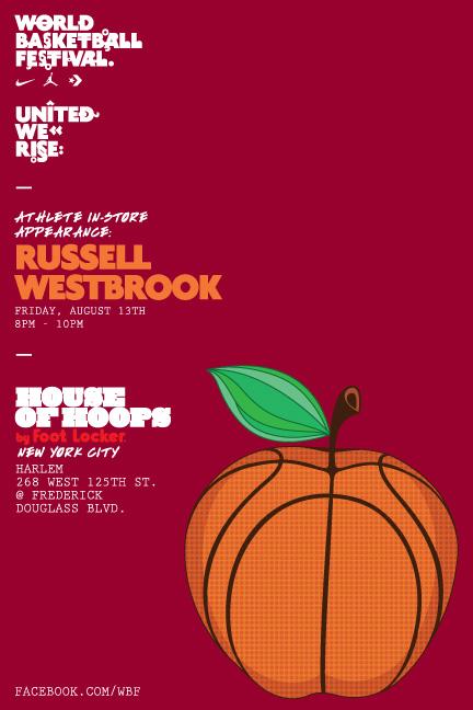 There are a number of events that have both already taken place and are yet to take place in celebration and anticipation of the FIBA World Championships. These events are a part of New York’s World Basketball Festival, which includes a concert by Jay-Z and online charity auction for a number of Jay-Z x Nike Air Force 1 lows that represent a number of different countries participating in the international basketball competition. One more event has just been announced. Tomorrow, Friday August 13th, Russell Westbrook of the Oklahoma City Thunder will be stopping by the Harlem House of Hoops from 8-10PM. So, if you’re in the area, you might want to stop by, take part in the first annual Nike World Basketball Festival, and have a word with the electrifying young point guard.