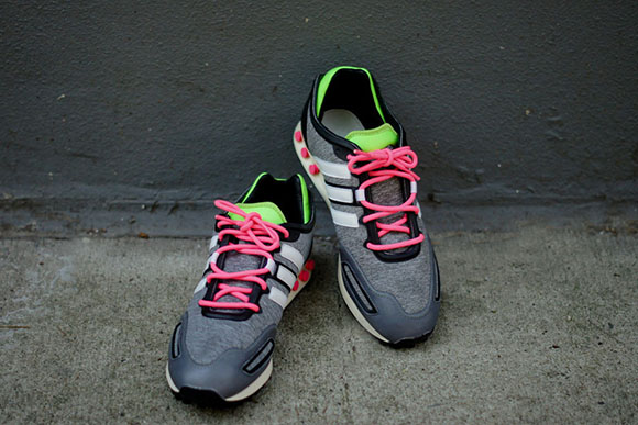 Shoe extraordinaire and longtime Adidas correspondent Yohji Yamamoto has once again came up with a brilliant set of shoes to release in his new, “Neon Pack.” The pack consists of a Tokio Trainer made of grey fleece held together by black and grey leather around the shoe complimented with hint’s of neon green and pink on the laces, tongue tab, and top of the heel. The other two additions to the Y-3 “Neon Pack” are the new Qasa model, a high and a low top version. Yamamoto made the shoe to be a form fitting sock with a “roll-ball” outsole, the low top pair are similar to that of the Roshe Run’s. The high top Qasa model has black neoprene straps across the body off the shoe also accented with pink, green and blue neon color’s around the shoe. This set of kick’s are available right now at Kith, but you better hurry as they are going fast. Check back with Sneakerfiles for more news on Y-3’s sneakers and much more!